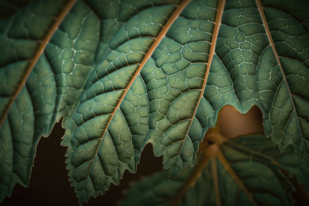 Discover the beauty of lush green leaves featuring intricate textures and vibrant coloration. Perfect for nature lovers and ecological themes.