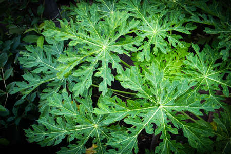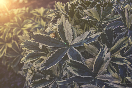 Garden plants. Lavish foliage in summer time. Background with green leaves.