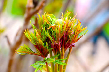 Saint Gallen, Switzerland, March 24, 2024 Syneilesis Palmata or palmate umbrella plant at the botanical garden