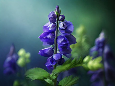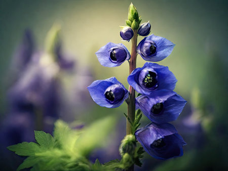 Aconite flower commonly known as aconitum, monkshood, wolf.