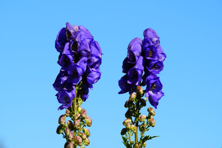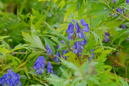Monkshood, Aconitium napellus is a poisonous and medicinal plant with blue flowers.