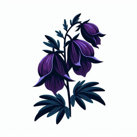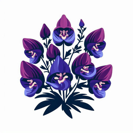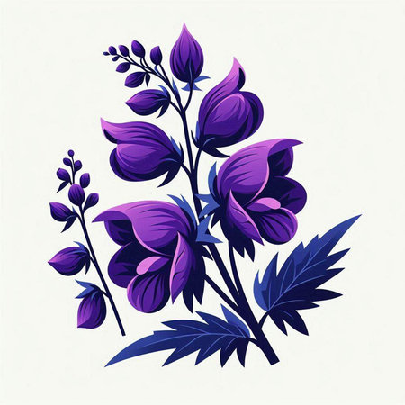 Illustration of a blue wildflowers on a white background.