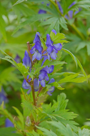 Close-up of aconitum kusnezoffii, native to Siberia, Korea and China.