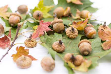 Acorns on a white background.