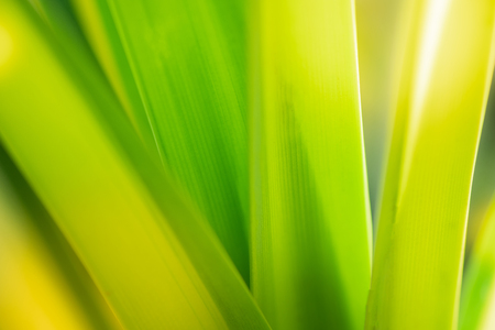 a full frame bright vibrant green glowing sunlit iris leaf nature background