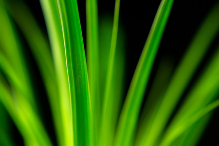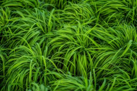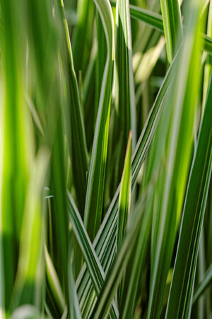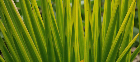 Vetiver, Chrysopogon zizanioides, a kind of grass with large and green leaves. Fresh and colorful leaves close up.