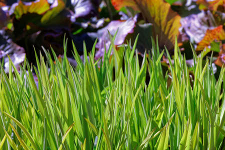 Green grass in garden. Spring ffresh background.