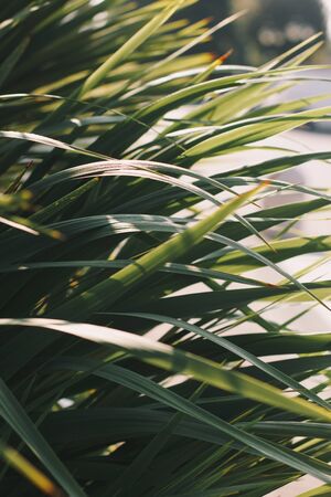 Long dark green yucca leaves. Natural, tropical background.