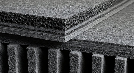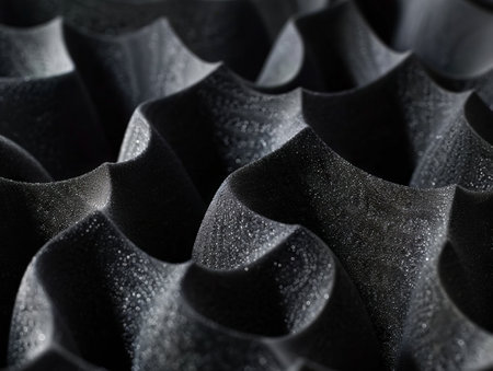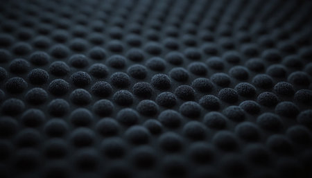 This close-up image showcases a textured black foam surface featuring circular indents, ideal for use in design projects, presentations, and backgrounds.