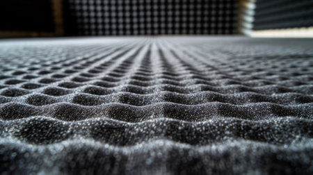 Textured acoustic foam rubber features a series of triangular prisms that enhance sound absorption. This material is commonly used in recording studios and soundproof rooms to improve audio quality