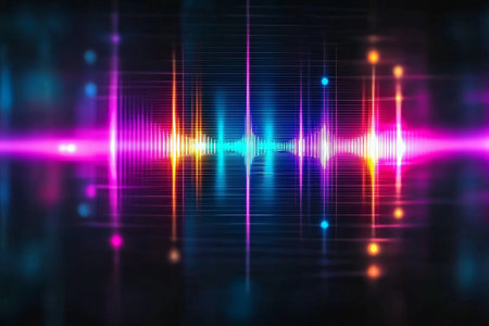Audio waveform equalizer neon color. Computer generated abstract background. 3D render illustration