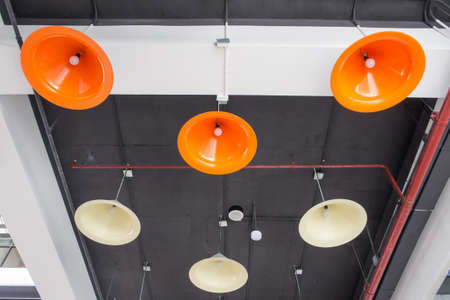 Light wooden cafe interior, Cafe ceiling interior lighting (vintage tone)