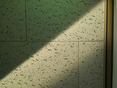 Ceiling made of tiles. interior details. white ceiling in office Tiles in interior design.