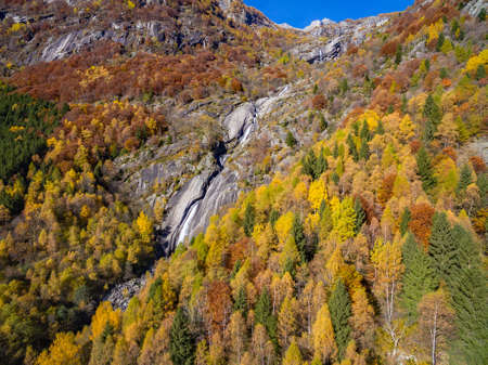 Val di Mello - Valmasino (IT) - Waterfall in CÃ di Rogni - autumnal aerial view
