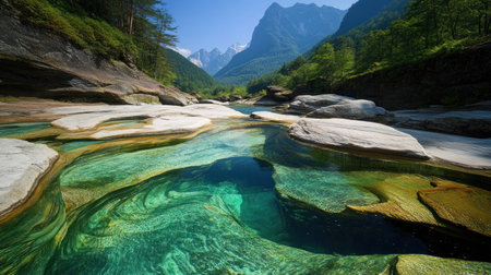 Rocks formation and landscape at Verzasca river, Ticino, Switzerland