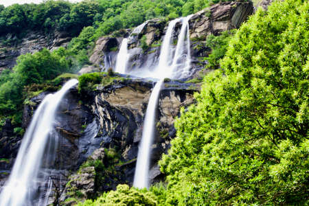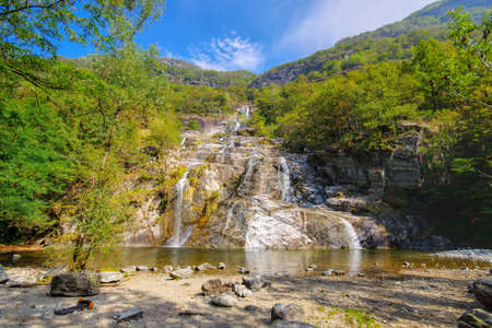 waterfall Cascata delle Sponde in the Maggia Valley, Ticino in Switzerland, Europe