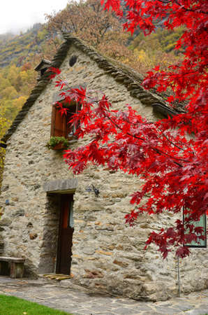 Old Stone house in autum next to beautiful tree