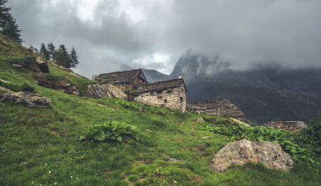Abandoned building high in alpine mountains