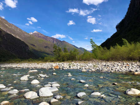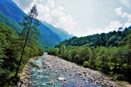 The Maggia river in the Maggia Valley or Valle Maggia or Maggiatal (Fluss Maggia im Maggiatal) - Canton of Ticino, Switzerland