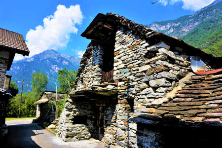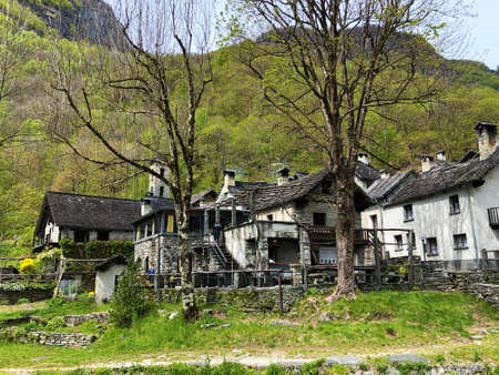 Traditional architecture and old houses in the hamlet of Foroglio (The Bavona Valley or Valle Bavona, Val Bavona or Das Bavonatal) - Canton of Ticino, Switzerland