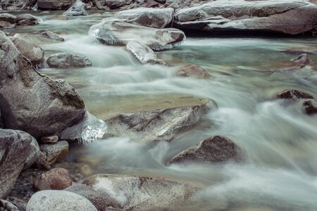 flowing stream in winter, long exposure