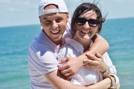 Beautiful happy couple hugging on the city street.Lifestyle concept love and romance.