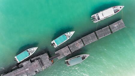 Aerial view of small boat flowing in sea, travel and vacation concept BANNER, LONG FORMAT