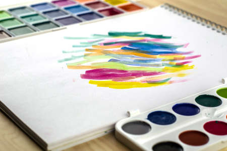 watercolor paints sketchbook with samples of paints. High quality photo