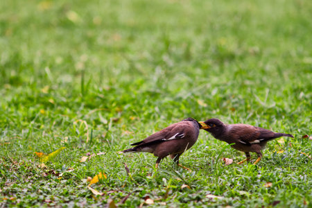 Common Myna bird (Acridotheres tristis) Sedentary bird in Thailand
