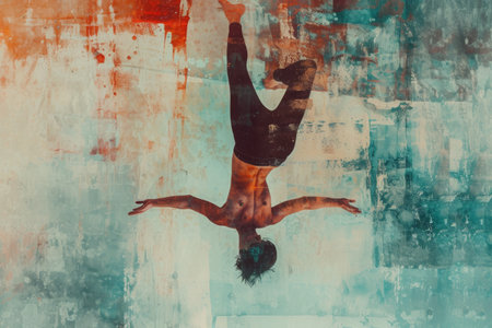 Painting of a Person Performing a Handstand, Half abstract representation of a person floating while performing yoga, AI Generated