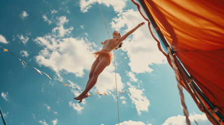 GOLD COAST - FEB 17 2024:Female rope acrobat on acrobatics performance.In China, acrobatics have been a part of the culture since the Tang dynasty (203 BC).