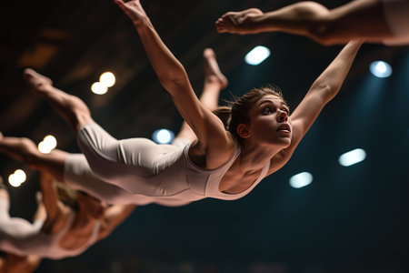 Gymnasts mid-air during a performance AI generated