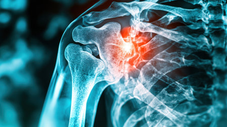 Blue-Tinted X-ray Reveals Detailed Shoulder Joint Inflammation and Swelling Signs