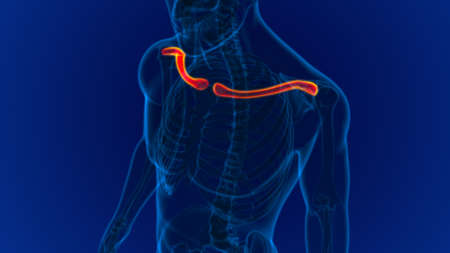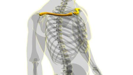 3D Illustration Concept of Human Skeleton System Clavicle Bone Joints Anatomy