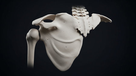 Explore the intricate structure of the human shoulder complex, featuring detailed anatomical bones displayed against a black background for educational and scientific use.