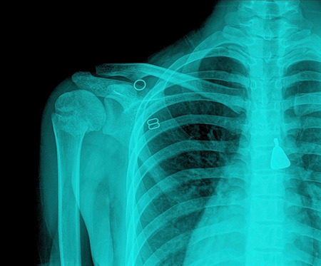 X-ray of the shoulder joint part,caused by an accident.