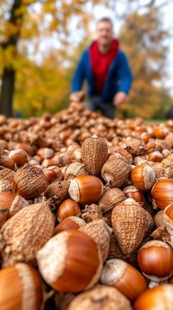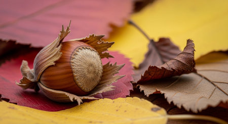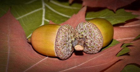 Acorns on autumn leaves, shallow depth of field, selective focus