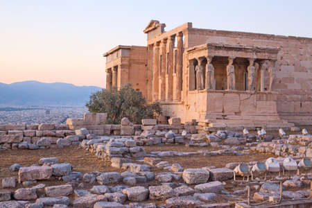 Erechtheion ancient greek temple building with columns, Athens, Greece.