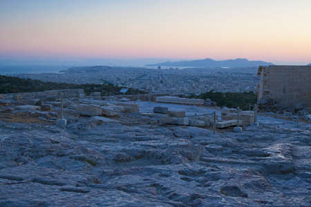 View of the Acropolis of Athens, an ancient citadel located on a rocky outcrop above the city of Athens