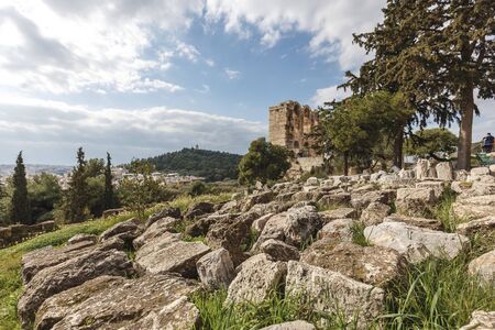 A picturesque cloudy scenery in Acropolis of Athens, Greece