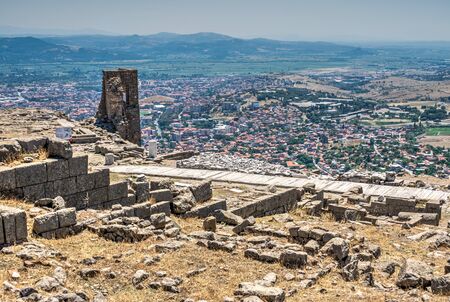 Bergama, Turkey, Acropolis - Antique Complex of the Ancient City of Pergama, located on a high hill, view of ruins and city