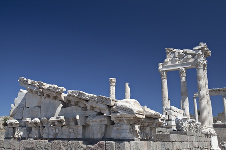 Temple of Trajan in ancient city Pergamon, Bergama, Turkey in a beautiful summer day