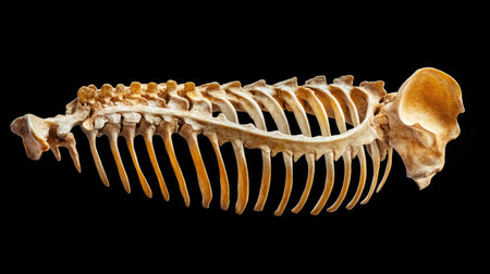 Close-up view of human rib cage highlighting the intricate details and textures of the bones, suitable for educational purposes, medical illustrations, and biology studies.