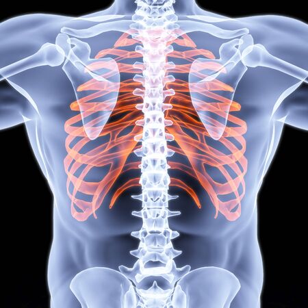 Human skeleton anatomy Rib Cage 3D Rendering For Medical Concept