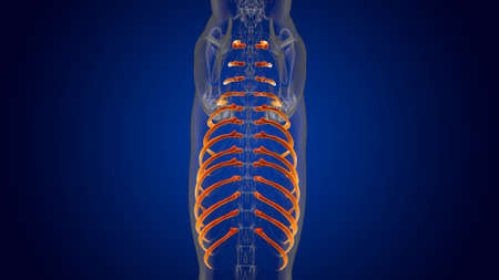 Human skeleton anatomy Costal Cartilage 3D Rendering For Medical Concept