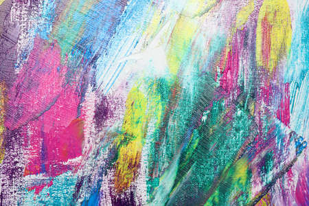 Strokes of colorful acrylic paints on canvas, closeup