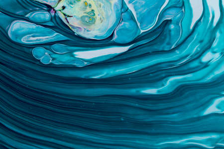 Close Up Colorful Blue White Green Fluid Pouring Abstract Art Acrylic Painting Texture Background