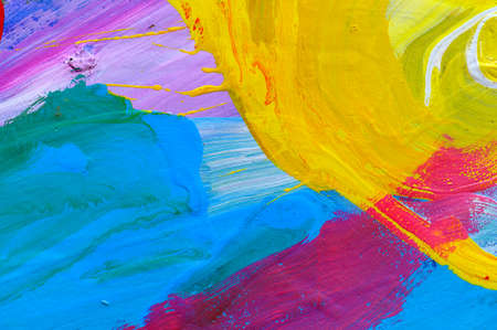 Strokes of colorful acrylic paints on canvas, closeup