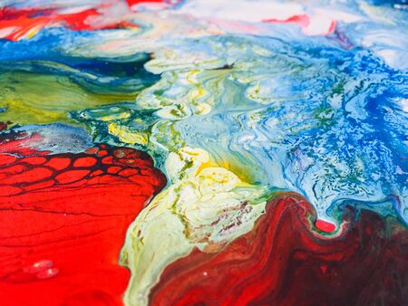 Close Up Colorful Red Blue White Colors Fluid Pouring Abstract Art Acrylic Painting Texture Background