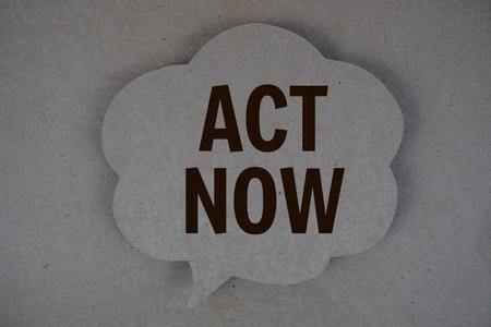 Act Now text with speech bubble on paper craft background